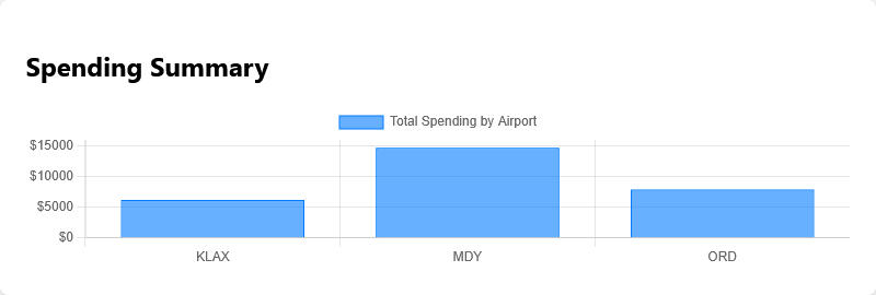 Instantly Visualize Your Costs: See your total fuel spending automatically broken down by airport in a clean, easy-to-read chart.